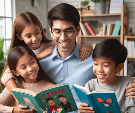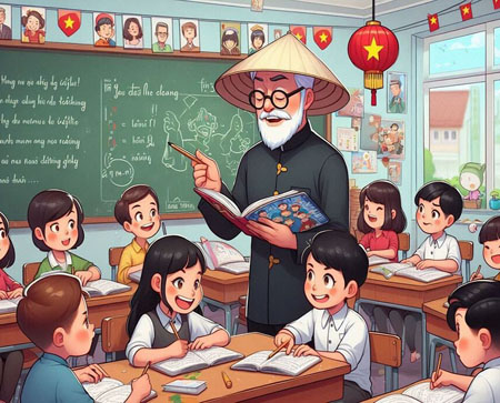 cô Huyền, thầy Sơn 2 bạn BiBi và Susie.